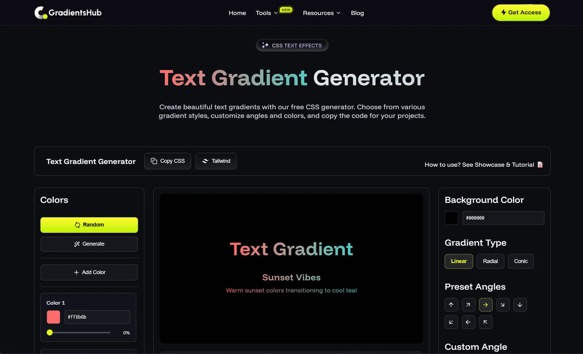Gradient generation tool - CSS text gradient generator